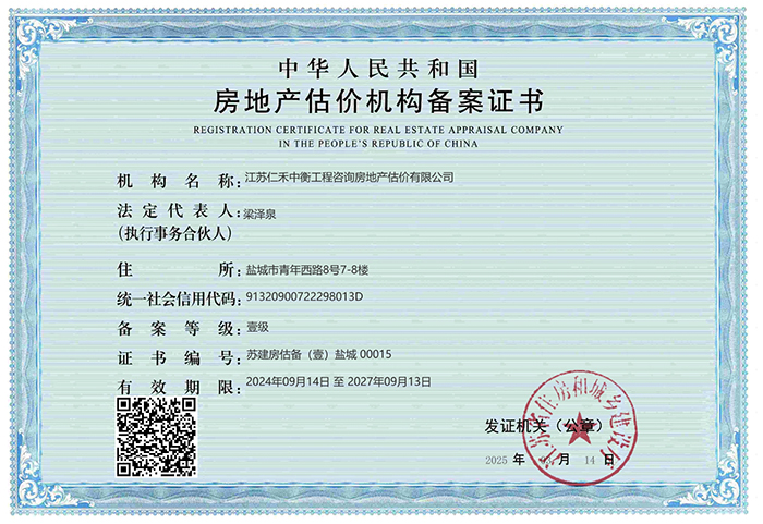 • 土地評估資質證書